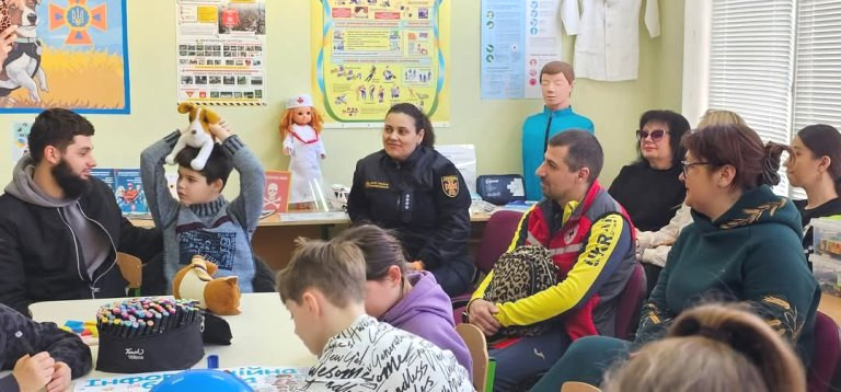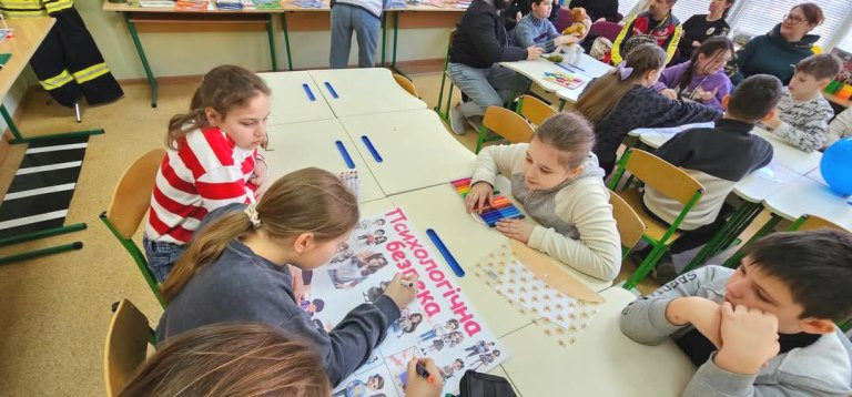 К мероприятию присоединились специалисты ГСЧС Украины, Национальной полиции и Общества Красного Креста Украины, которые провели с учащимися тематические беседы.