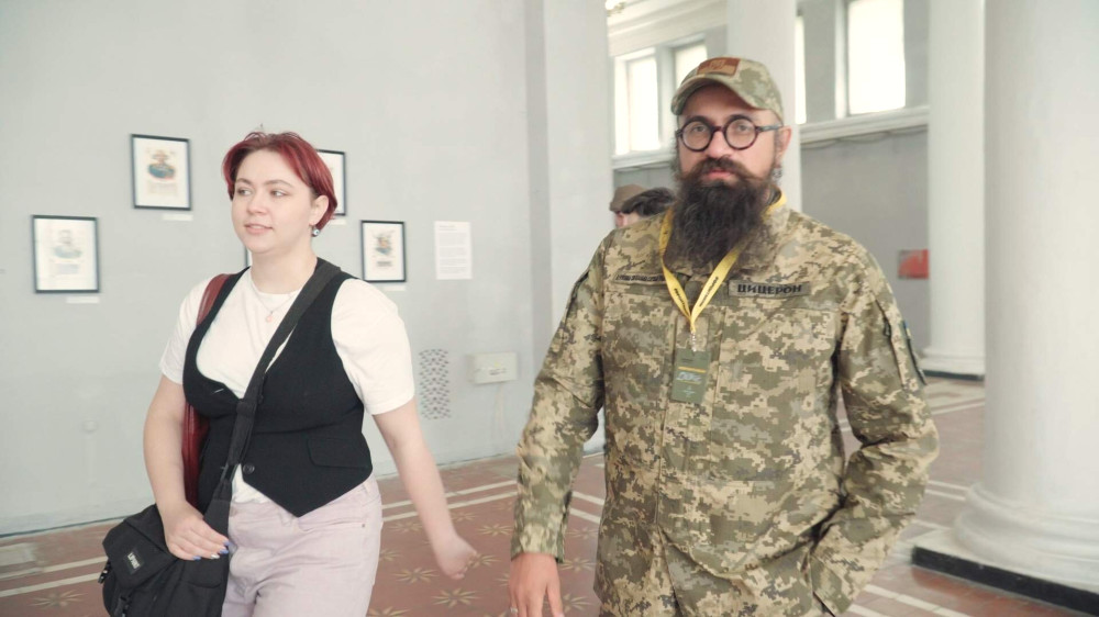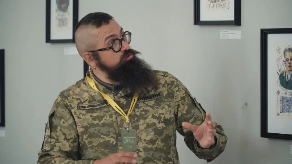 Одесский художник Денис Недолуженко, который сейчас служит младшим сержантом в Государственной специальной службе транспорта, представил свои работы на выставке "Искусство на фронте", проходящей с 24 по 27 апреля в Киеве.