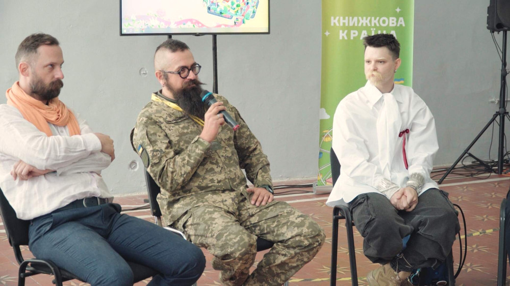 Это мероприятие является частью фестиваля "Книжная страна" и объединяет художников, чьи работы отражают их личный опыт войны и сопротивления.